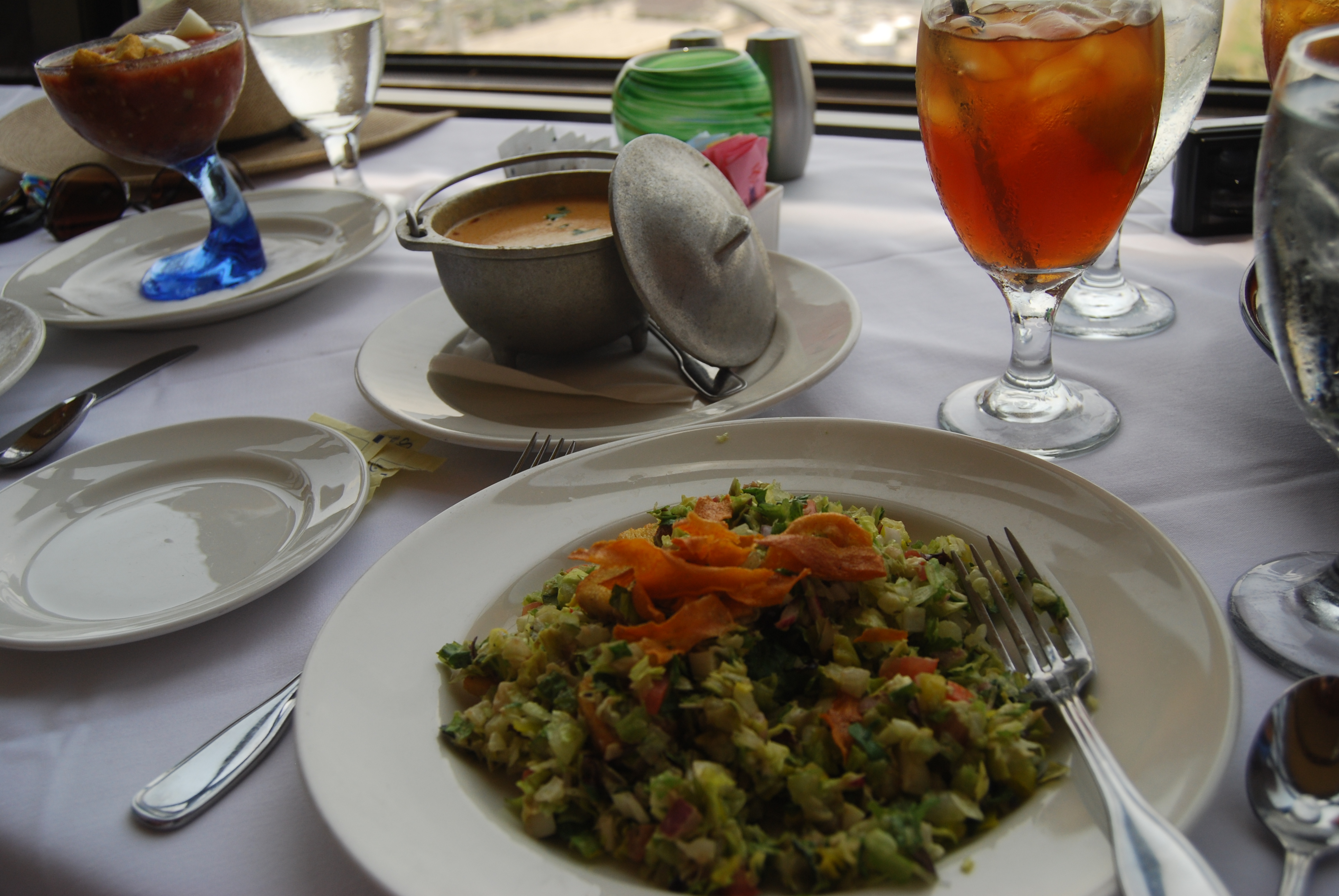 Finally, on Thursday we had lunch at the Chart House Restaurant at the top of the Tower of the Americas in San Antonio. The restaurant is one of those that slowly spins around at the top of a tower built for the 1968 HemisFair. I had a chop salad with balsamic vinaigrette and lobster bisque. It was a nice change from some of the more filling meals I’ve had.